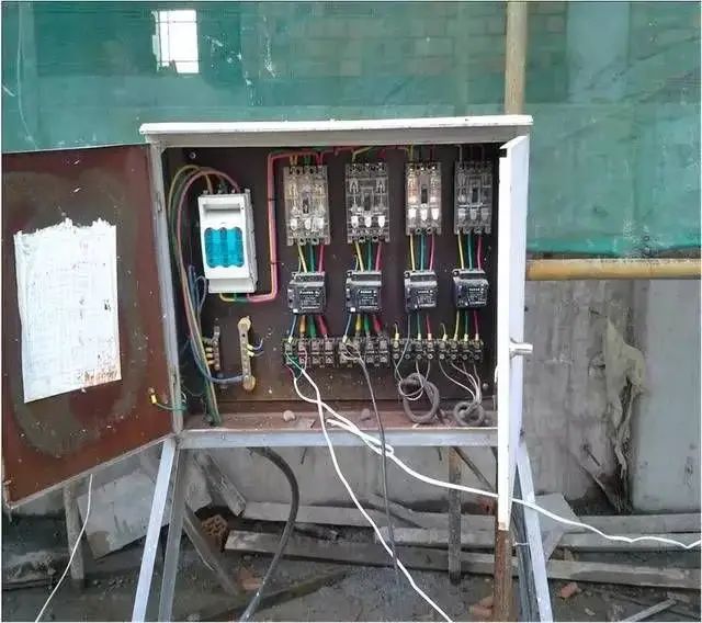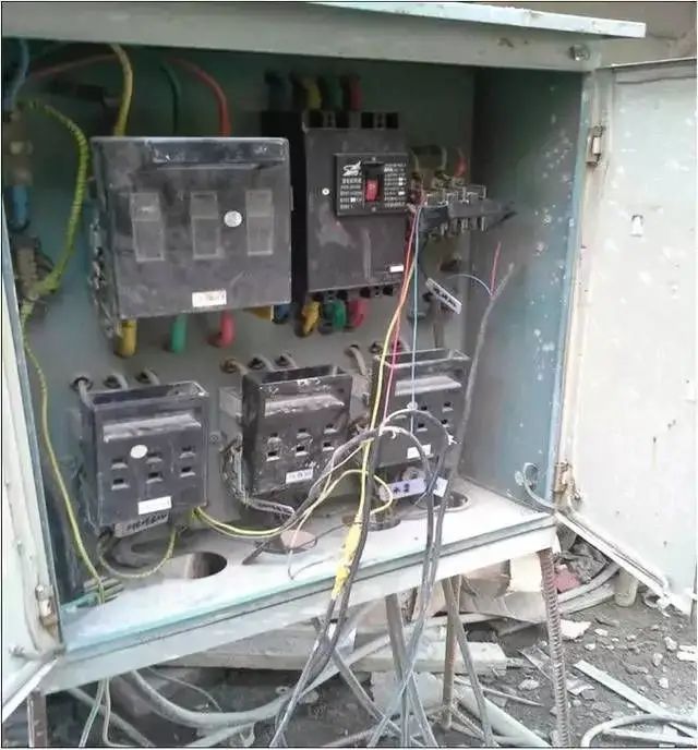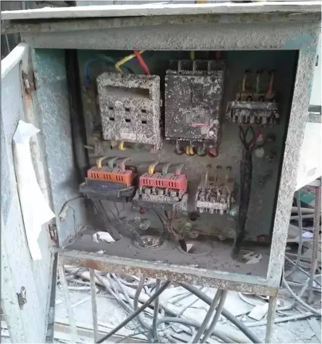 1.動(dòng)力箱與照明箱混用; 2.用護(hù)套線代替電纜線;3.蓋罩不全。