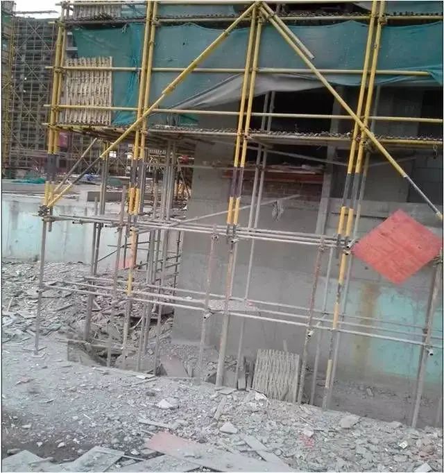 架底基礎(chǔ)不硬化,不設(shè)掃地桿,不設(shè)雙立桿,剪刀撐不落地