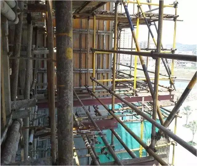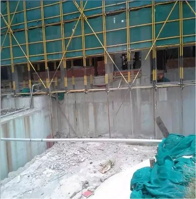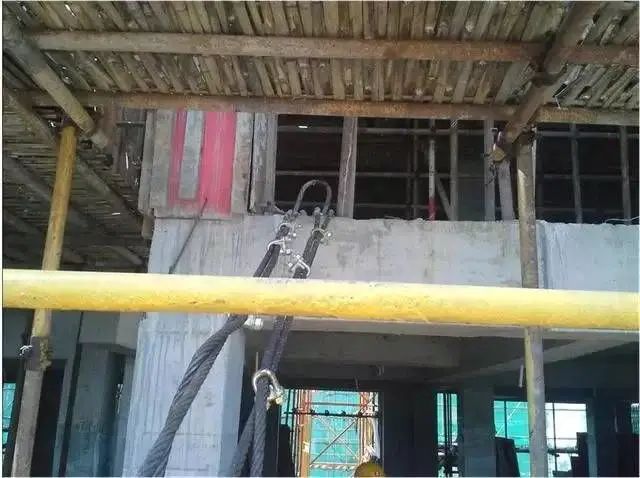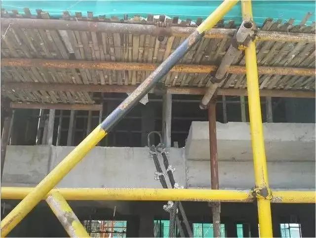 懸挑腳手架陰角懸挑長(zhǎng)度5米以上不設(shè)頂撐不拉鋼絲繩,該處承重強(qiáng)度和架體穩(wěn)定性不能保證