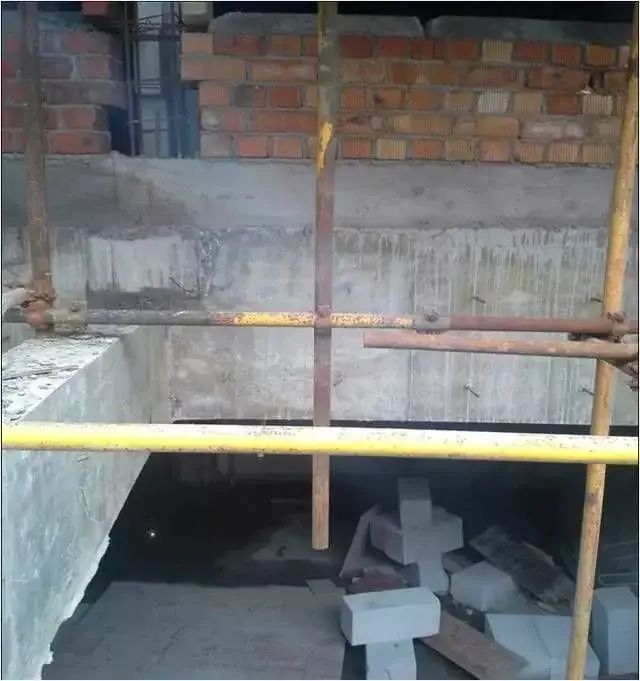 外腳手架內(nèi)立桿用鋼管做橫擔(dān)懸空擱在采光井頂面