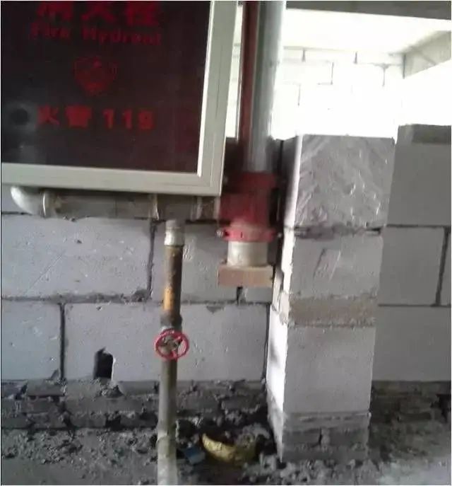 現(xiàn)場(chǎng)消防栓主管用時(shí),腳手架鋼管代替DN100消防主管